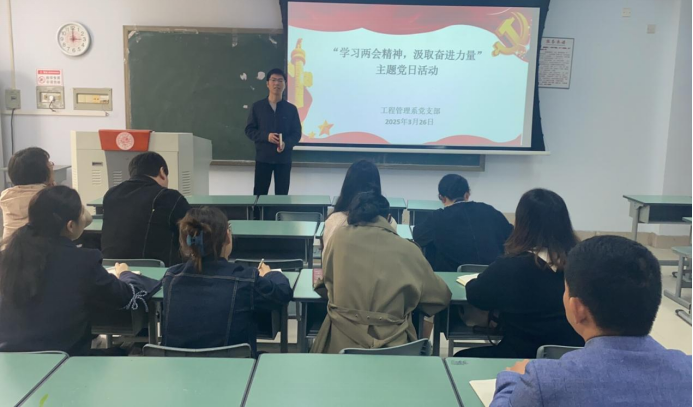 为学习贯彻两会精神,在学深悟透中凝聚思想共识,在热议畅谈中激发奋进力量,3月26日下午,谈球吧工程管理系党支部围绕“学习两会精神,汲取奋斗力量”这一主题,开展了一场别开生面的主题党日活动。本次活动旨在深入学习贯彻习近平总书记在云南考察时的重要讲话精神,以及政府工作报告的核心内容,通过分享交流,激发支部党员的奋斗热情,为新时代的发展贡献力量。