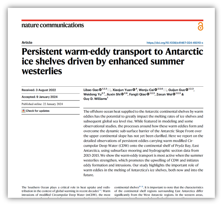 袁小军博士,哥伦比亚大学拉蒙特-多尔蒂地球研究院,海洋学教授,海洋及冰川学家。知名华人科学家和为数不多的华人女性终身研究教授。她主导了大量美国顶尖地球科学研究课题,研究集中于海洋-大气-海冰在极地区域的相互作用、热带和极地的联系、极地物理海洋学以及海冰的可预测性等方面,为地球科学做出了卓越的贡献。长期以来,她在科研之余,为地球科学领域的青年人才培养做出不懈的努力。代表成果:Gao, L. X. Yuan, W. Cai, G. Guo, W. Yu, J. Shi, F. Qiao, Z. Wei, and Guy D. Williams, 2024: Persistent warm-eddy transport to Antarctic ice shelves driven by enhanced summer westerlies. Nature Communication,15,671. https://doi.org/10.1038/s41467-024-45010-x. @16.6, #0